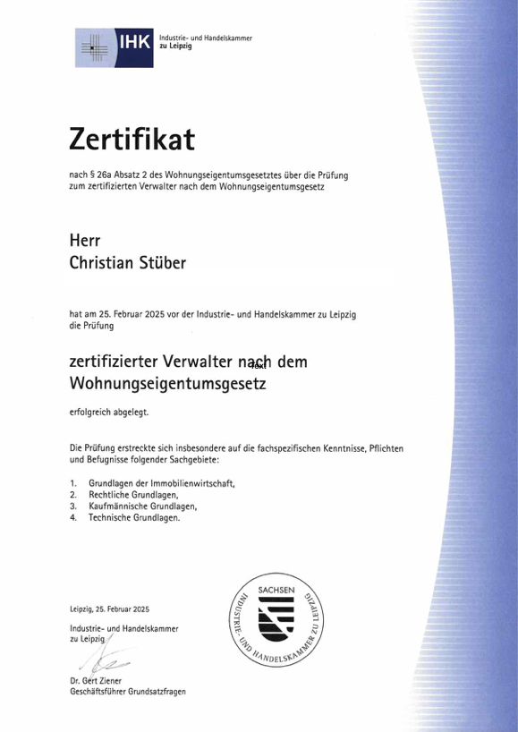 Das Zertifikat der digitalen Immobilien Verwaltung Leipzig